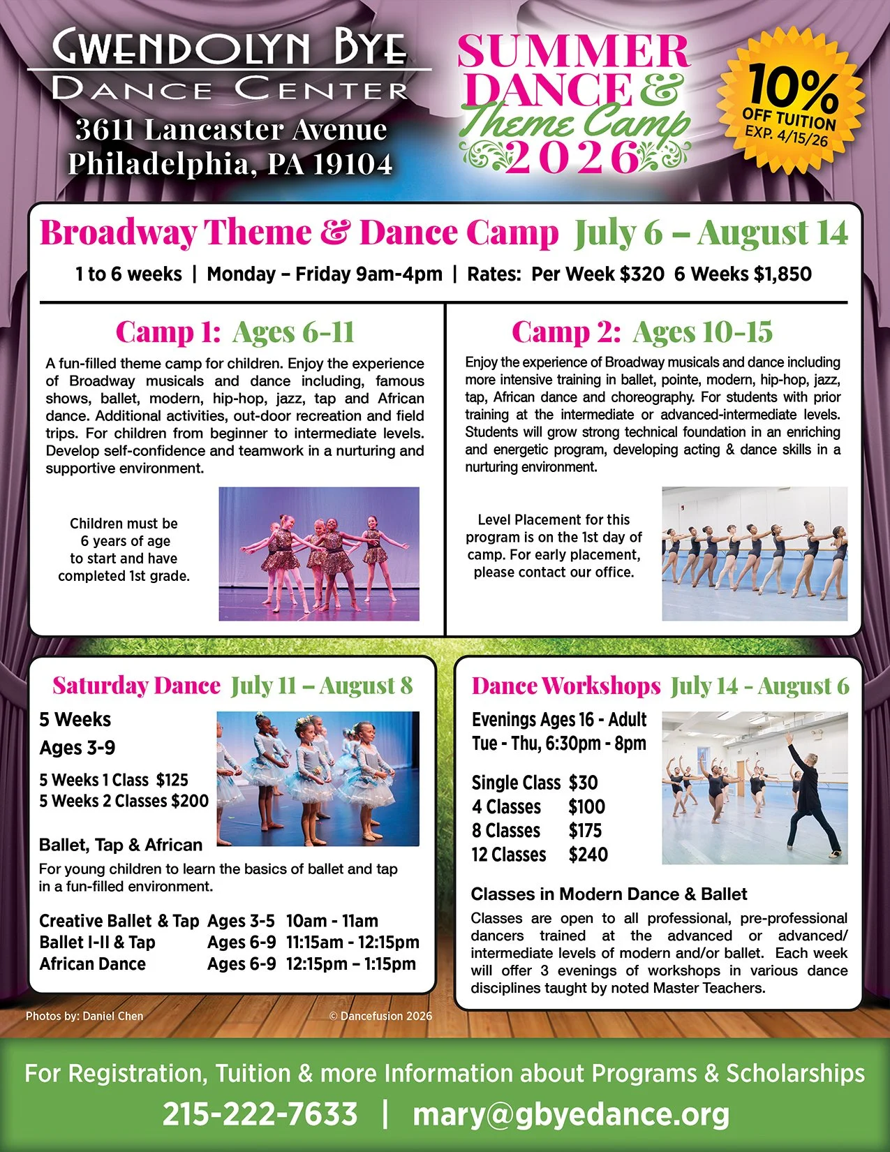 GWENDOLYN BYE DANCE CENTER / 3611 Lancaster Avenue / Philadelphia, PA 19104 / 215-222-7633